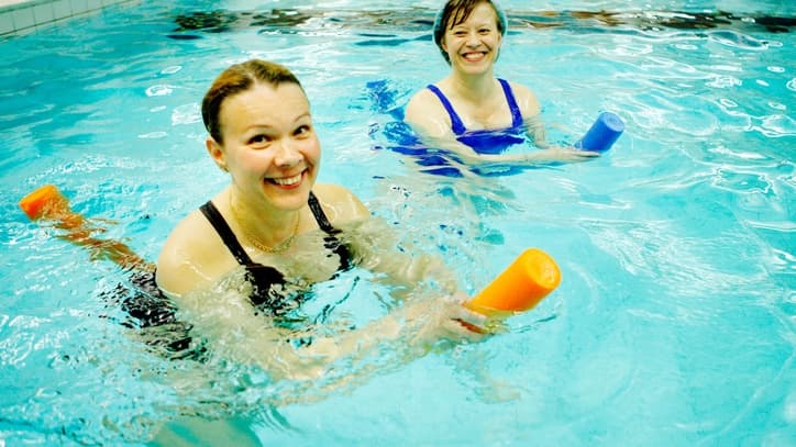 Våra bassängträningsgrupper har en ledare ( våra medlemmar) som även tränar själv i vattnet. Vi tränar hela kroppen med härlig musik till.